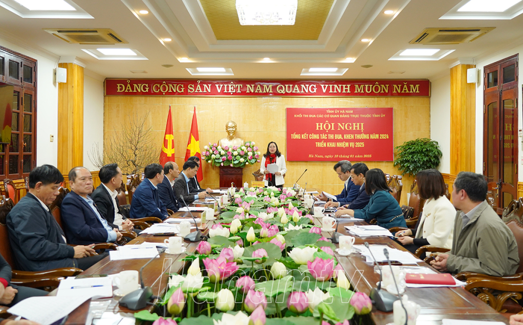 Sáng 10/1, Khối Thi đua các cơ quan Đảng trực thuộc Tỉnh ủy tổ chức hội nghị tổng kết công tác thi đua, khen thưởng (TĐKT) năm 2024, triển khai nhiệm vụ năm 2025. Đồng chí Đinh Thị Lụa, Phó Bí thư Thường trực Tỉnh ủy, lãnh đạo phụ trách khối thi đua dự, chỉ đạo hội nghị. Dự hội nghị có thủ trưởng các đơn vị thành viên trong Khối, lãnh đạo Sở Nội vụ.