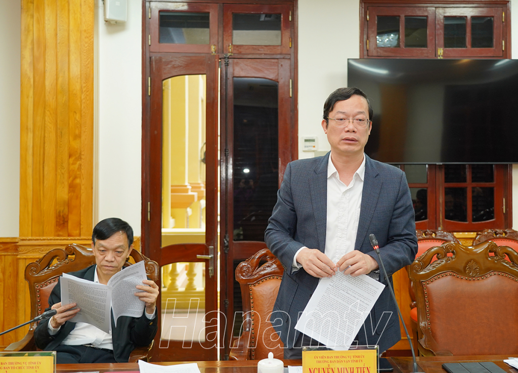 Đồng chí Đặng Đình Thoảng, Ủy viên BTV Tỉnh ủy, Trưởng Ban Tổ chức Tỉnh ủy phát biểu tại hội nghị.Đồng chí Nguyễn Minh Tiến, Ủy viên BTV Tỉnh ủy, Trưởng Ban Dân vận Tỉnh ủy phát biểu tại hội nghị.