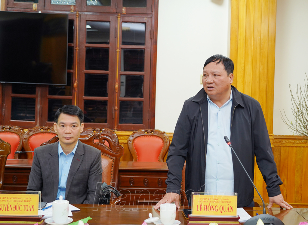 Đồng chí Lê Hồng Quân, Ủy viên BTV Tỉnh ủy, Chủ nhiệm Ủy ban Kiểm tra Tỉnh ủy phát biểu tại hội nghị.