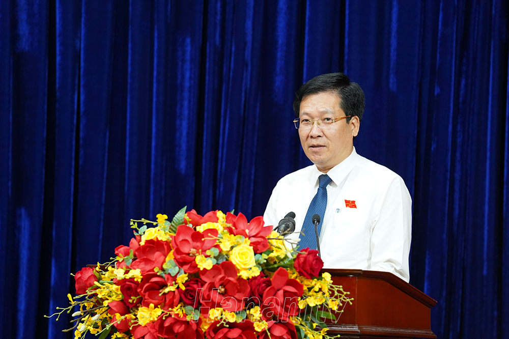 Tiếp đó, Giám đốc Sở Nội vụ Lê Xuân Huy trả lời kiến nghị của các cử tri, chất vấn của đại biểu về việc: đề nghị tỉnh xem xét có cơ chế hỗ trợ các ông, bà tham gia Ủy viên Ban Thường vụ, Thường trực của MTTQ và các hội, đoàn thể chính trị- xã hội cấp xã; đề nghị tăng mức hỗ trợ cho chi hội trưởng các hội đoàn thể ở địa phương; đề nghị tỉnh xem xét nâng mức trợ cấp cho các cán bộ ở thôn, tổ dân phố theo phân loại của Nghị quyết số 16/2023/NQ-HĐND ngày 07/12/2023 của HĐND tỉnh Hà Nam; bổ sung chỉ tiêu biên chế giáo viên trong năm học 2024-2025 và trong những năm tiếp theo đề nghị tỉnh xem xét, điều chỉnh nhiệm kỳ bầu cử trưởng thôn, tổ dân phố là 5 năm để cán bộ thôn, tổ dân phố an tâm công tác; việc làm thẻ căn cước công dân sau tại các địa phương sẽ thay đổi tên sau khi sáp nhập đơn vị hành chính..