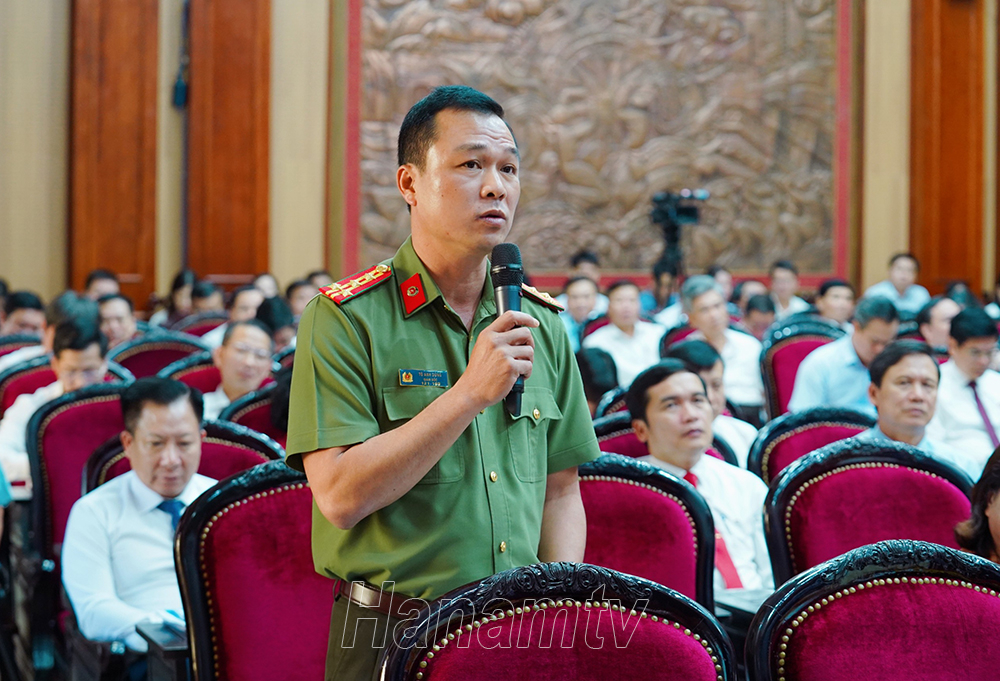 Đại tá Tô Anh Dũng, Giám đốc Công an tỉnh tham gia trả lời ý kiến của cử tri gửi tới Kỳ họp về vấn đề làm thẻ căn cước cho công dân tại các địa phương sáp nhập đơn vị hành chính.