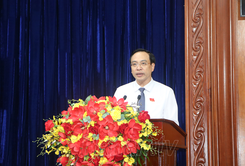 Đồng chí Đặng Thanh Sơn, Ủy viên BTV Tỉnh ủy, Phó Chủ tịch Thường trực HĐND tỉnh phát biểu khai mạc kỳ họp.Đồng chí Trần Xuân Dưỡng, TUV, Phó Chủ tịch UBND tỉnh trình bày các tờ trình của UBND tỉnh tại kỳ họp.