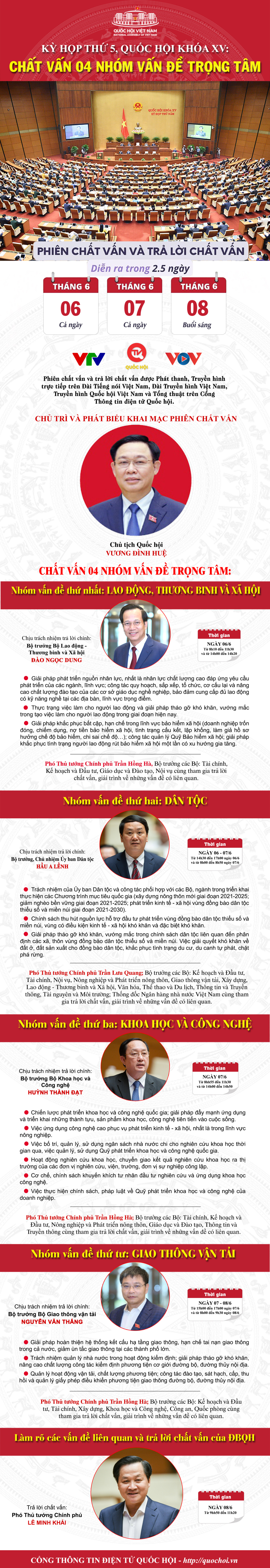 KỲ HỌP THỨ 5, QUỐC HỘI KHÓA XV: CHẤT VẤN 04 NHÓM VẤN ĐỀ TRỌNG TÂM