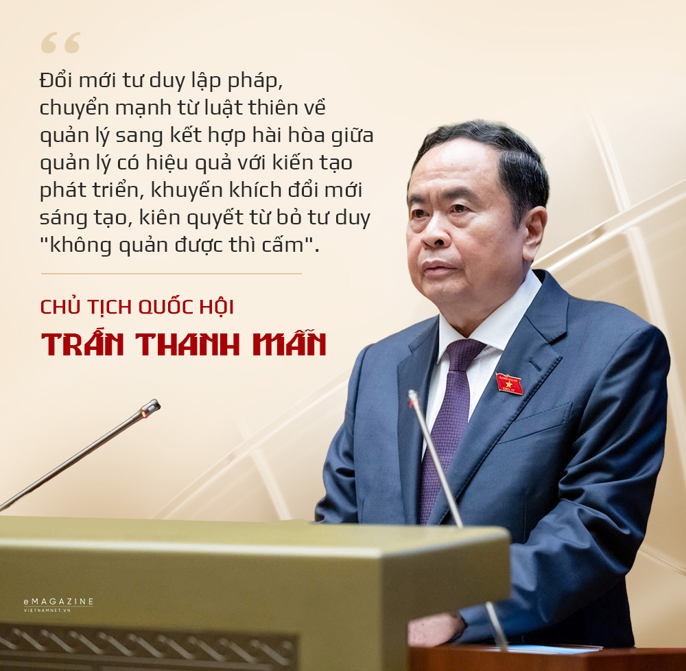 Ở góc độ của cơ quan lập pháp, giám sát, Chủ tịch Quốc hội Trần Thanh Mẫn cho biết thời gian qua, Quốc hội đã khẩn trương, quyết liệt đẩy mạnh đồng bộ nhiều giải pháp đổi mới, cải tiến để quyết tâm nâng cao chất lượng xây dựng và hoàn thiện pháp luật.