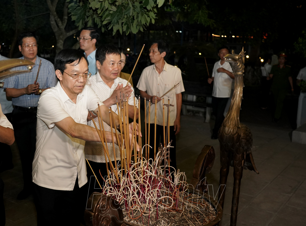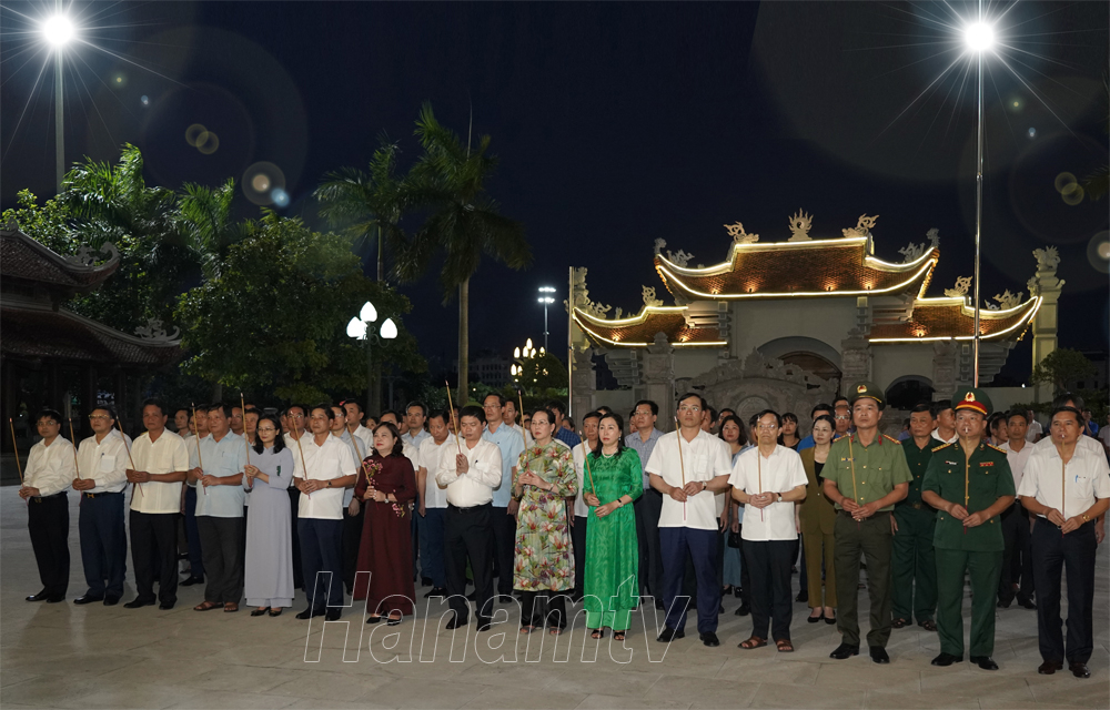Đoàn đại biểu lãnh đạo Tỉnh ủy, HĐND, UBND, Ủy ban MTTQ tỉnh Hà Nam trang nghiêm, thành kính dâng hương, dâng hoa tưởng niệm Anh linh Chủ tịch Hồ Chí Minh và hương hồn các Anh hùng Liệt sỹ