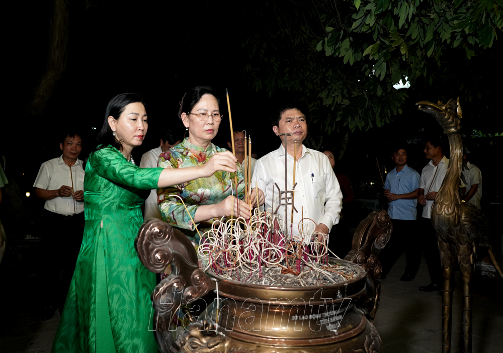 Nhân dịp này, các đồng chí lãnh đạo Tỉnh ủy, HĐND, UBND, Ủy ban MTTQ Việt Nam tỉnh Hà Nam và Thành phố Phủ Lý đã dâng hương tại Ban Thờ Chủ tịch Hồ Chí Minh, Ban Thờ các Anh hùng Liệt sỹ, Đền Thờ 10 nữ Anh hùng Liệt sỹ dân quân Lam Hạ và Nhà lưu niệm đồng chí Lương Khánh Thiện.