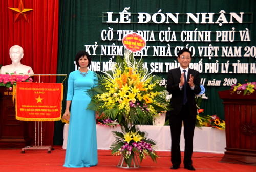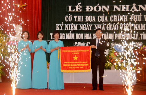 *Tại TP Phủ Lý, đồng chí Bùi Văn Hùng - Ủy viên BTV Tỉnh ủy, Bí thư Thành ủy đã đến chúc mừng, dự lễ Đón nhận Cờ thi đua của Chính phủ và và kỷ niệm ngày Nhà giáo Việt Nam 20/11 cùng cô trò Trường mầm non Hoa Sen.