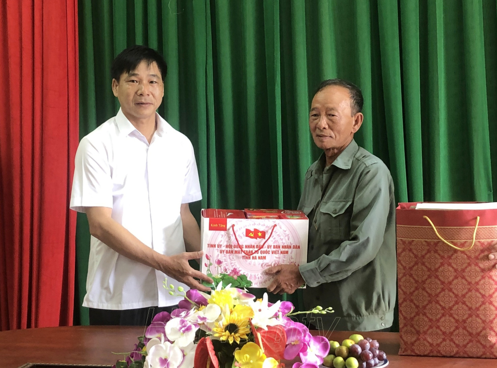 Tại TP Phủ Lý, đồng chí Đặng Thanh Sơn, Ủy viên BTV Tỉnh uỷ, Phó Chủ tịch Thường trực HĐND tỉnh; đồng chí Nguyễn Đức Toàn, Ủy viên Ban Thường vụ Tỉnh uỷ, Bí thư Thành ủy Phủ Lý cùng lãnh đạo UBND thành phố Phủ Lý đã đến thăm gia đình bà Hà Thị Hiền, 85 tuổi, vợ liệt sỹ Hoàng Nguyên Hợi, thôn Văn Lâm 1 và gia đình bệnh binh Lại Văn Hoè, thôn Đào, xã Liêm Tiết.