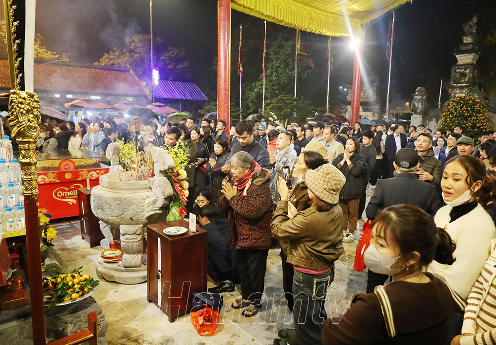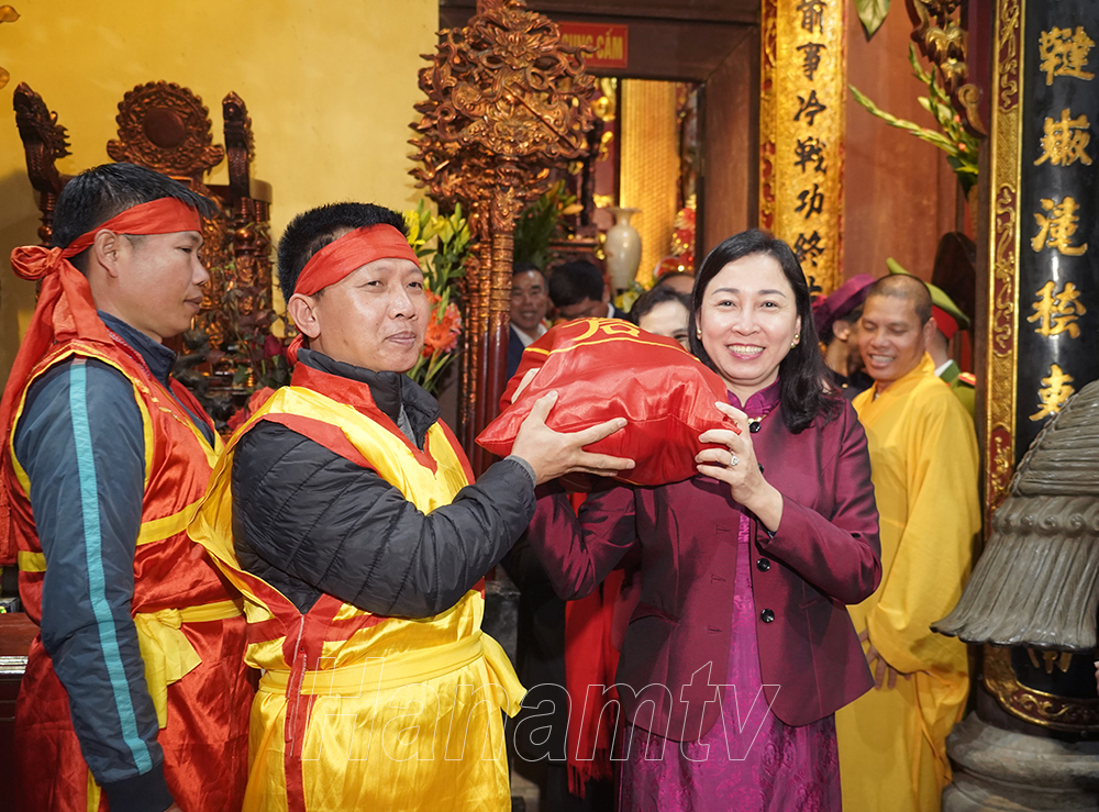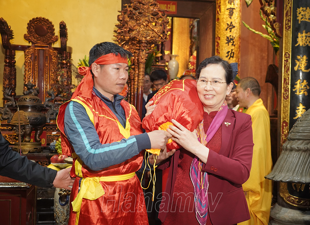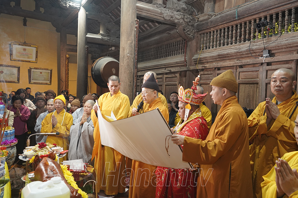 Hòa thượng Thích Thanh Quyết, Phó Chủ tịch Hội đồng trị sự Giáo hội Phật giáo Việt Nam, Trưởng Ban Trị sự Giáo hội Phật giáo tỉnh Hà Nam cùng các chư tôn đức Ban Trị sự Giáo hội Phật giáo tỉnh thực hiện nghi lễ tấu Văn trình tưởng nhớ công đức của Đức Thánh Nhân Vũ Hưng Đạo Đại Vương Trần Quốc Tuấn.Đông đảo nhân dân và du khách thập phương về dự lễ.