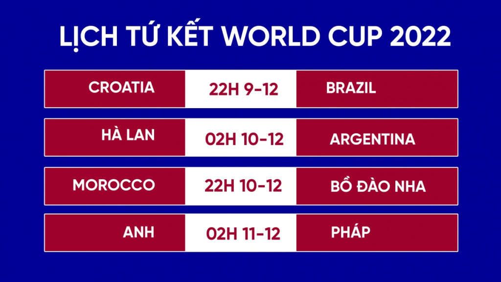 WORLD CUP 2022: Lịch thi đấu Tứ kết: Bồ Đào Nha gặp Morocco, Anh so tài Pháp