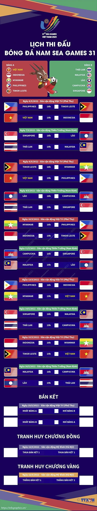 Lịch thi đấu vòng bảng môn bóng đá nam SEA Games 31