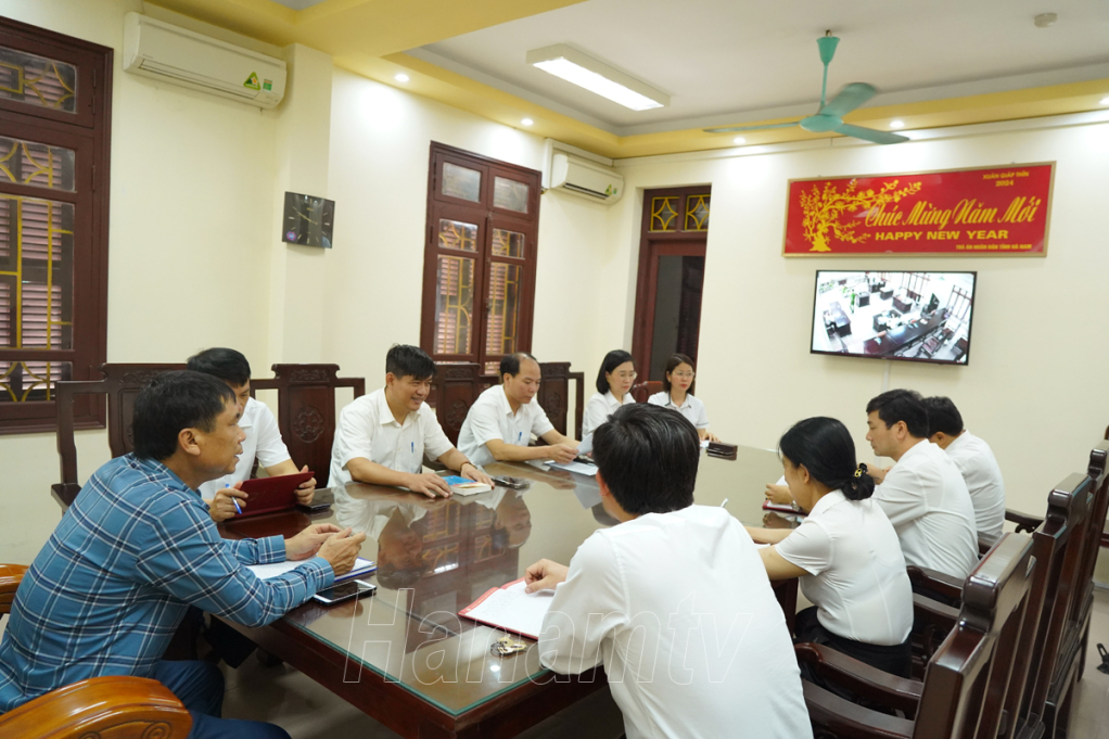 Các đại biểu là Thẩm phán Tòa án nhân dân tỉnh Hà Nam theo dõi quá trình xét xử phiên tòa hình sự sơ thẩm trực tuyến qua hệ thống camera giám sát Sau phiên tòa, các đại biểu trao đổi, thảo luận, đóng góp ý kiến làm rõ những ưu điểm cũng như một số tồn tại cần rút kinh nghiệm của Hội đồng xét xử vụ án.