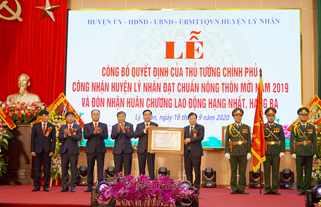 Sáng ngày 19/9/2020, Huyện ủy, HĐND, UBND, UBMTTQ huyện Lý Nhân đã long trọng tổ chức lễ công bố quyết định của Thủ tướng Chính phủ công nhận huyện Lý Nhân đạt chuẩn Nông thôn mới năm 2019 và đón nhận Huân chương Lao động.
