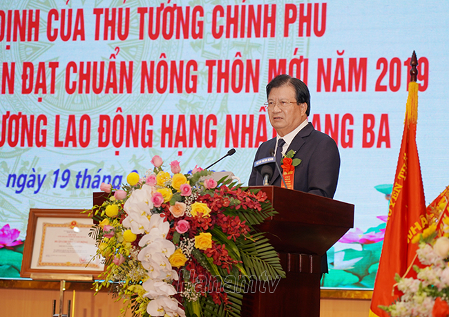 Thừa ủy quyền của Chủ tịch nước, tại buổi lễ Phó Thủ tướng Chính phủ Trịnh Đình Dũng trao tặng Huân chương Lao động Hạng Nhất và hạng Ba cho huyện Lý Nhân