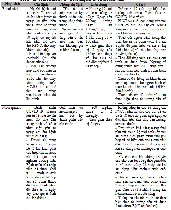 Mới: Bộ Y tế bổ sung hướng dẫn sử dụng thuốc Molnupiravir và Remdesivir trong điều trị COVID-19