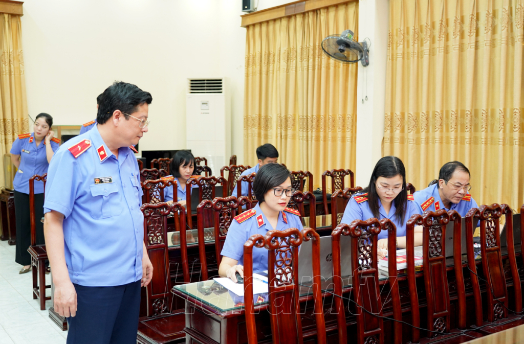 Các đội nghiên cứu, tổng hợp, xây dựng báo cáo đề xuất giải quyết án bằng sơ đồ tư duyLãnh đạo Viện kiểm sát nhân dân tỉnh kiểm tra, động viên các đội tham dự cuộc thiCác đội tham gia phần thi thực hành báo cáo án bằng sơ đồ tư duy và trả lời câu hỏi của Ban giám khảo.