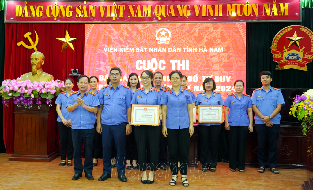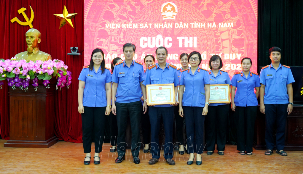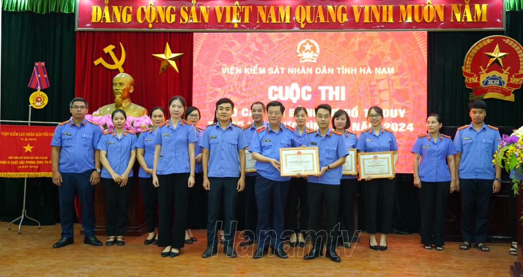 Lãnh đạo Viện KSND tỉnh trao giải Nhất cho đội thi Phòng Thực hành quyền công tố, kiểm sát điều tra, kiểm sát xét xử sơ thẩm án hình sự về an ninh, ma túy, kinh tế và tham nhũng (Viện KSND tỉnh)Lãnh đạo Viện KSND tỉnh trao giải Nhì cho đội thi Viện KSND huyện Thanh Liêm Lãnh đạo Viện KSND tỉnh trao giải Ba cho đội thi của Phòng Thực hành quyền công tố, kiểm sát xét xử phúc thẩm án hình sựĐại diện Ban tổ chức trao giải khuyến khích cho đội của Viện KSND thành phố Phủ Lý và Phòng Thực hành quyền công tố, kiểm sát điều tra, kiểm sát xét xử sơ thẩm án hình sự về trật tự xã hội (Viện KSND tỉnh)
