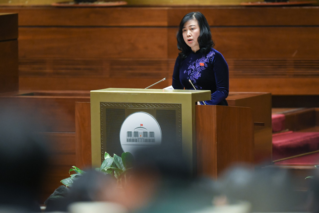 Bộ trưởng Bộ Y tế Đào Hồng Lan trình bày dự thảo Luật Khám bệnh, chữa bệnh (sửa đổi). (ảnh quochoi.vn)