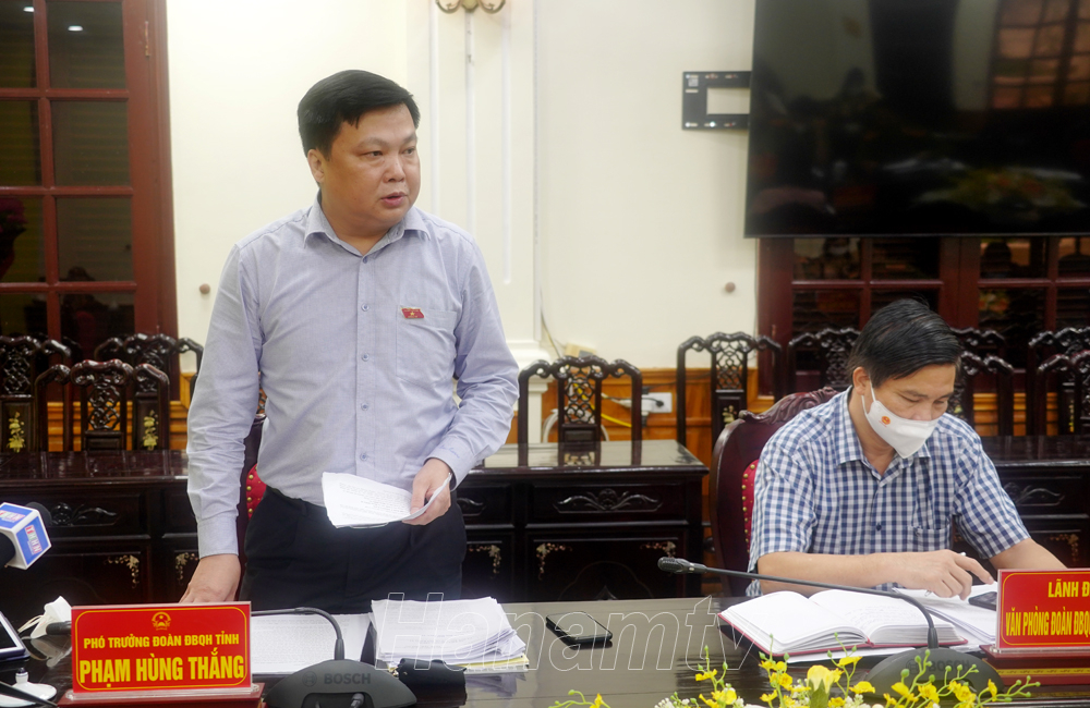 Đồng chí Phạm Hùng Thắng, Phó Trưởng đoàn ĐBQH tỉnh phát biểu thảo luận tại Tổ phiên họp chiều 21/10