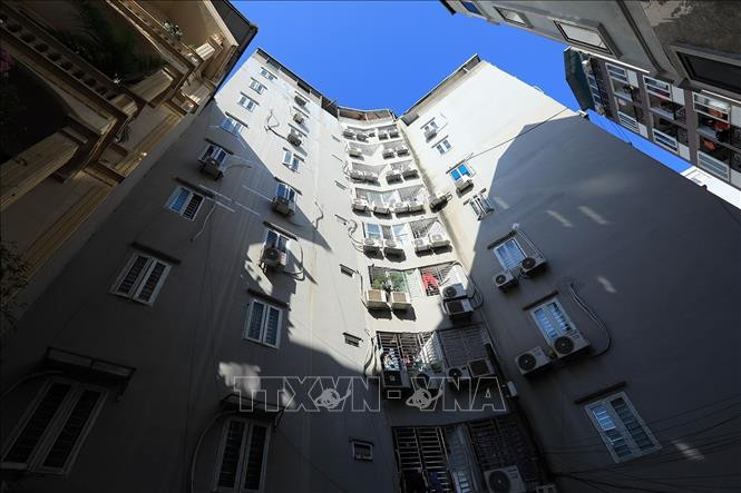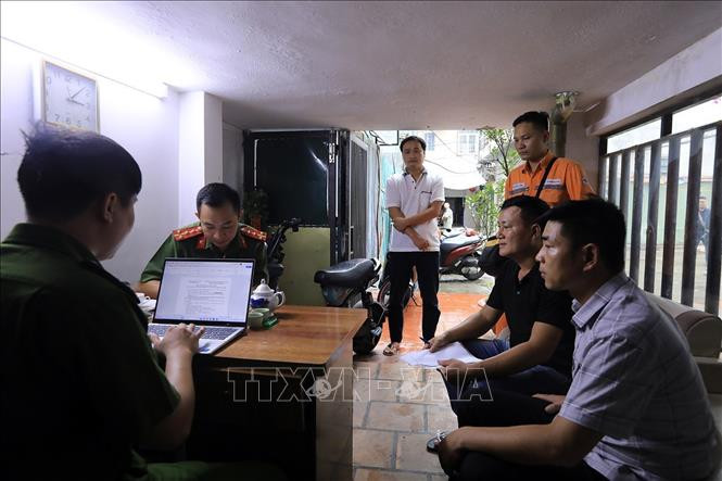 Tổ kiểm tra liên ngành quận Bắc Từ Liêm kiểm tra chung cư mini 205/53/50 Xuân Đỉnh về công tác PCCC. Ảnh: Tuấn Anh/TTXVN