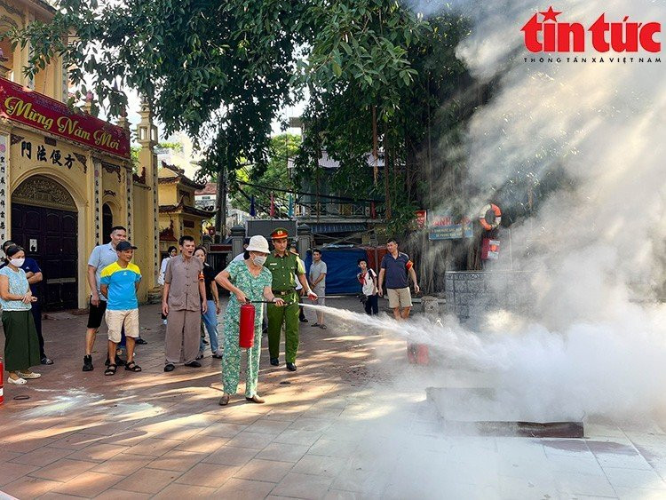 Người dân được thực hành sử dụng hai loại bình cứu hỏa. Ảnh: Báo Tin tức