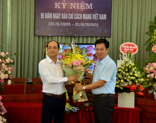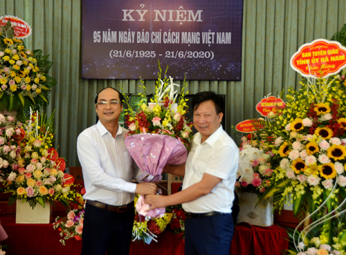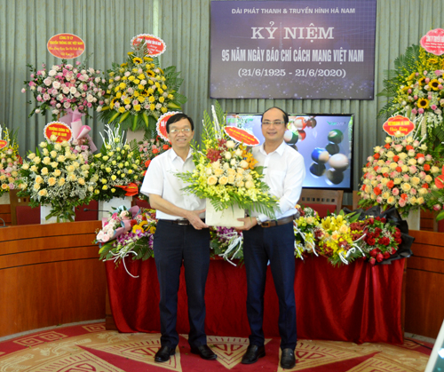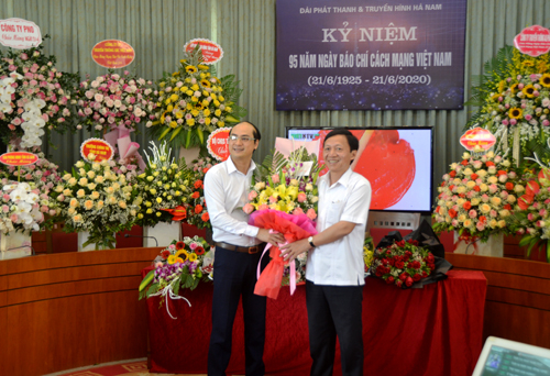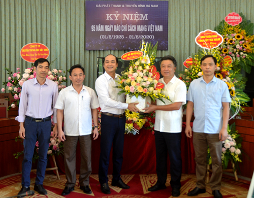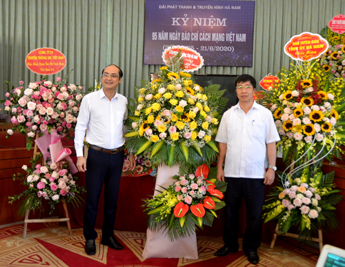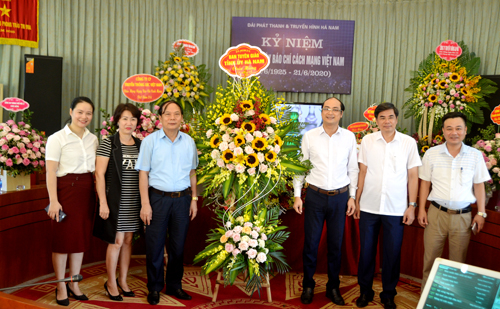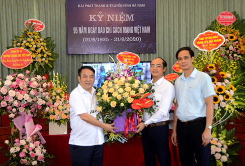 Nhân kỷ niệm 95 năm Ngày Báo chí cách mạng Việt Nam (21/6/1925 - 21/6/2020), các đồng chí lãnh đạo tỉnh, đại diện các địa phương, cơ quan, đơn vị đã đến tặng hoa chúc mừng, chia vui với cán bộ, phóng viên, nhân viên Đài PT -TH Hà Nam.