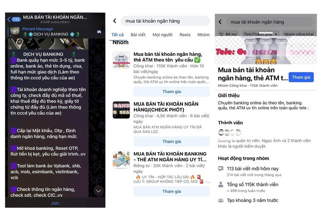 Các kênh mua bán, giao dịch tài khoản ngân hàng rác trên mạng.