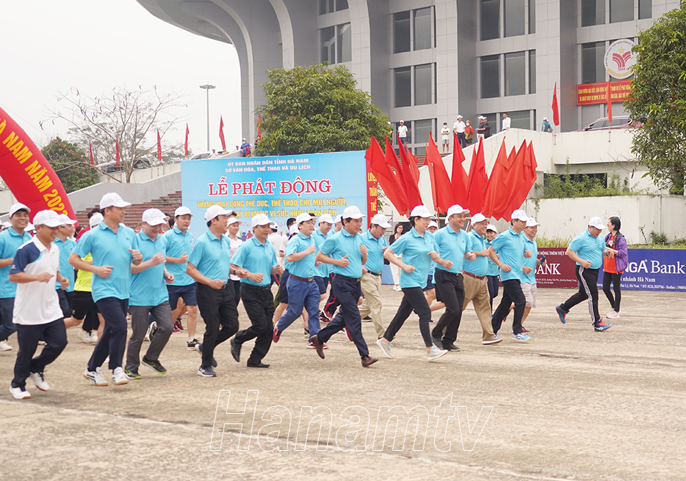 Hưởng ứng lễ phát động, các đồng chí lãnh đạo tỉnh, lãnh đạo Sở VHTT&DL, UBND TP Phủ Lý và cán bộ, công chức, người lao động ngành VHTT&DL, lực lượng cán bộ, chiến sỹ Công an Tỉnh và Trại giam Nam Hà đã tham gia chạy việt dã vòng quanh Nhà thi đấu TDTT tỉnh.