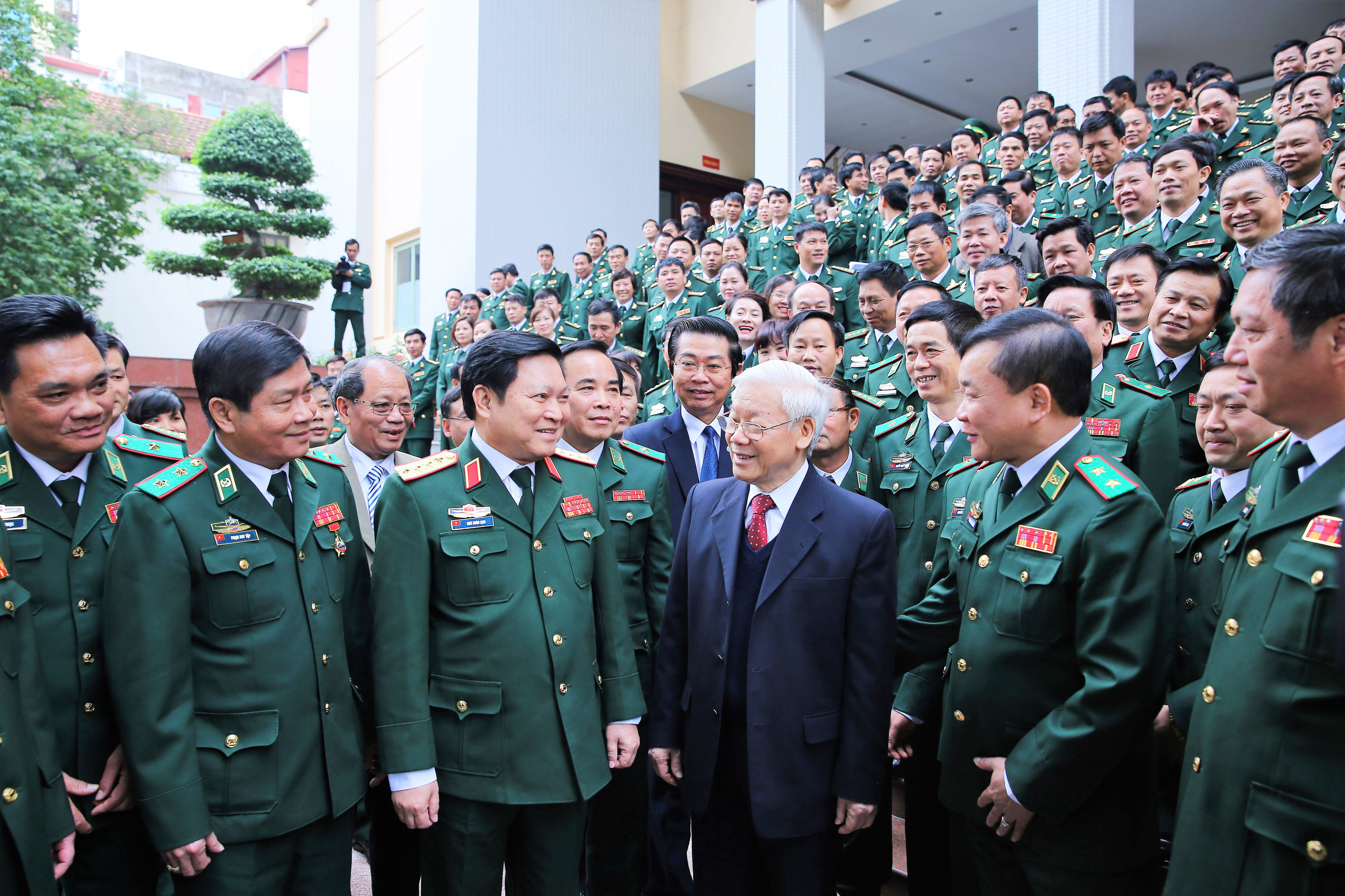Tổng Bí thư Nguyễn Phú Trọng với cán bộ, chiến sĩ Bộ Tư lệnh Bộ đội Biên phòng (năm 2017) _Nguồn: Vnanet.vn