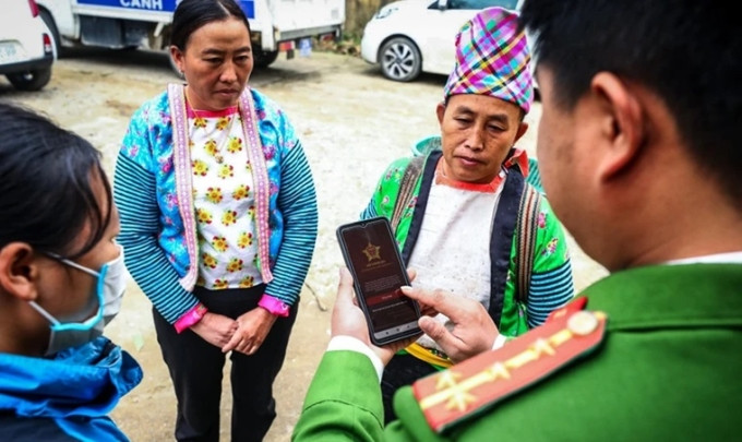 Công an xã Hua Thanh, huyện Điện Biên, tỉnh Điện Biên hướng dẫn cài đặt phần mềm VNeID cho nhân dân trên địa bàn. (Ảnh: Thành Đạt/ Báo Nhân Dân)