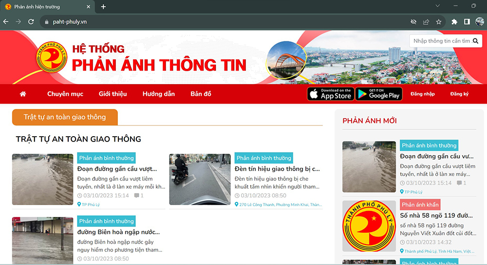 Giao diện Website Hệ thống Phản ánh thông tin của thành phố Phủ Lý: https://paht-phuly.vn