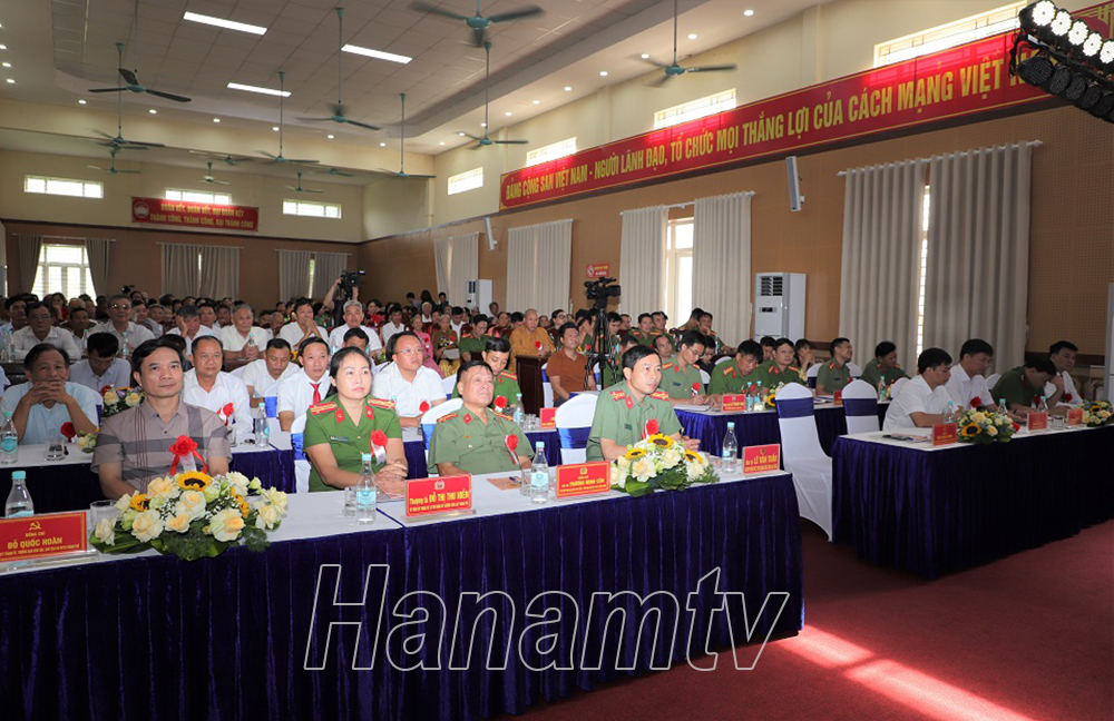 Thay mặt Tỉnh ủy, HĐND, UBND, UBMTTQ tỉnh Hà Nam, đồng chí Trần Xuân Dưỡng, Tỉnh ủy viên, Phó Chủ tịch UBND tỉnh, Trưởng Ban Chỉ đạo phòng chống tội phạm, tệ nạn xã hội và Xây dựng phong trào toàn dân bảo vệ ANTQ tỉnh tặng lẵng hoa chúc mừng Ngày hội.