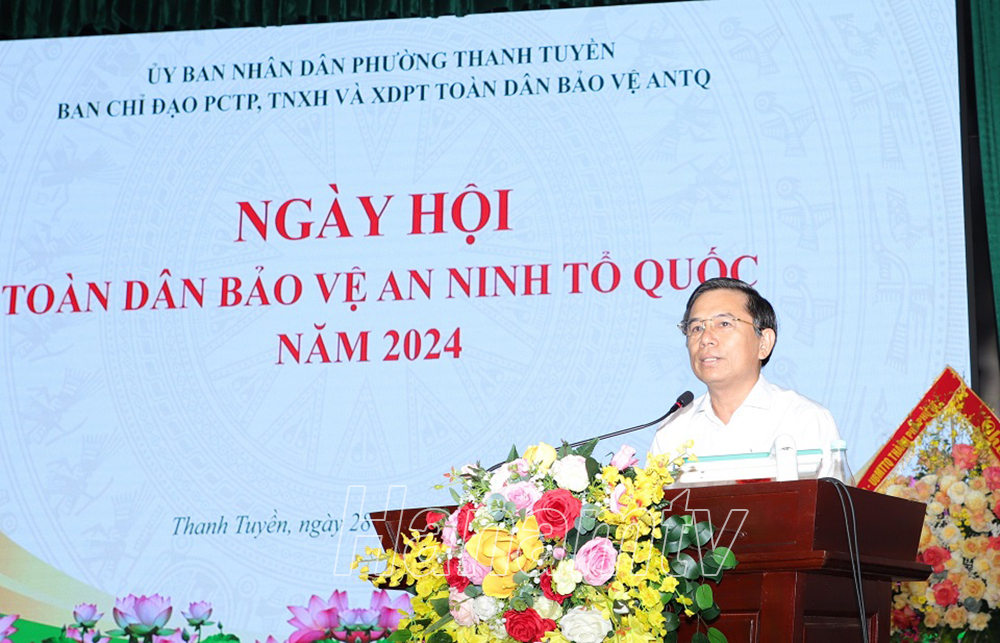 Ban Chỉ đạo (BCĐ) phòng chống tội phạm, tệ nạn xã hội (TNXH) và xây dựng phong trào Toàn dân bảo vệ an ninh Tổ quốc (ANTQ) phường Thanh Tuyền (thành phố Phủ Lý) tổ chức “Ngày hội Toàn dân bảo vệ ANTQ năm 2024”. Đây là đơn vị được Công an tỉnh lựa chọn tổ chức điểm Ngày hội toàn dân bảo vệ ANTQ năm 2024. Đồng chí Trần Xuân Dưỡng, Tỉnh ủy viên, Phó Chủ tịch UBND tỉnh, Trưởng BCĐ phòng, chống tội phạm, tệ nạn xã hội và xây dựng phong trào toàn dân bảo vệ ANTQ tỉnh dự, chỉ đạo ngày hội.