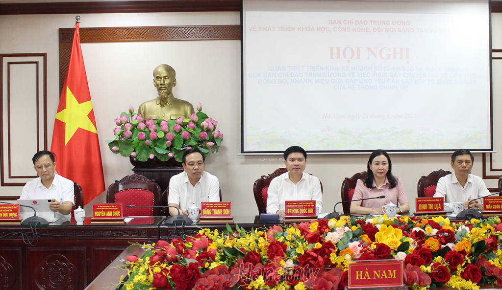 Dự hội nghị tại điểm cầu Hà Nam có các đồng chí: Trương Quốc Huy, Bí thư Tỉnh ủy, Chủ tịch UBND tỉnh, Trưởng Đoàn đại biểu Quốc hội tỉnh, Trưởng BCĐ về phát triển KHCN, đổi mới sáng tạo và CĐS tỉnh Hà Nam; Đinh Thị Lụa, Phó Bí thư Thường trực Tỉnh ủy; các đồng chí Ủy viên Ban Thường vụ (BTV) Tỉnh ủy; các Phó Chủ tịch UBND tỉnh; thành viên BCĐ về phát triển KHCN, đổi mới sáng tạo và CĐS tỉnh Hà Nam; lãnh đạo các sở, ban, ngành, các tổ chức chính trị - xã hội tỉnh. Hội nghị được kết nối tới điểm cầu các địa phương và 33 xã, phường mới của tỉnh (sau sáp nhập).