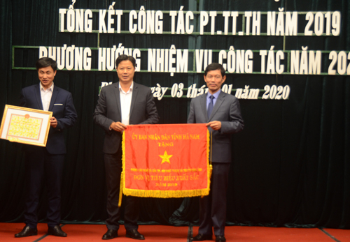 Đồng chí Bùi Quang Cẩm, Tỉnh ủy viên, PCT UBND tỉnh trao cờ thi đua và bằng khen của UBND tỉnh cho các tập thể, cá nhân có thành tích xuất sắc trong các phong trào thi đua yêu nước năm 2019
