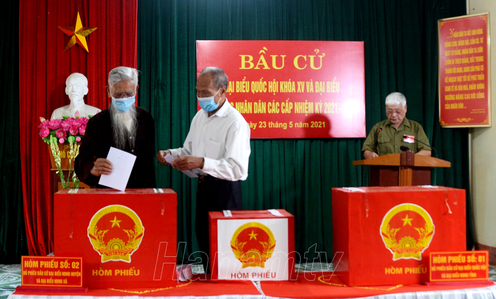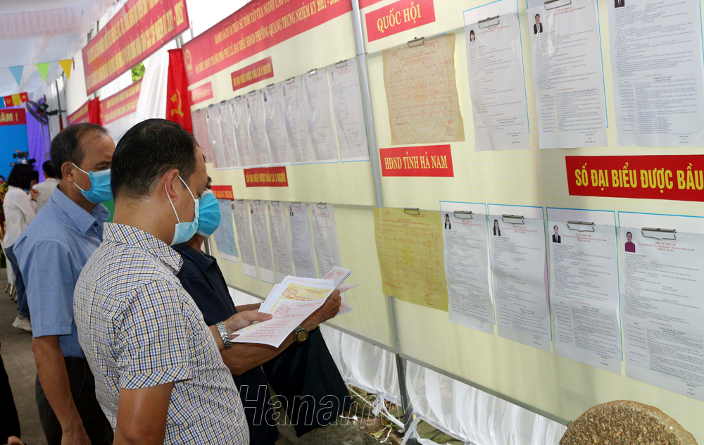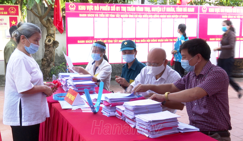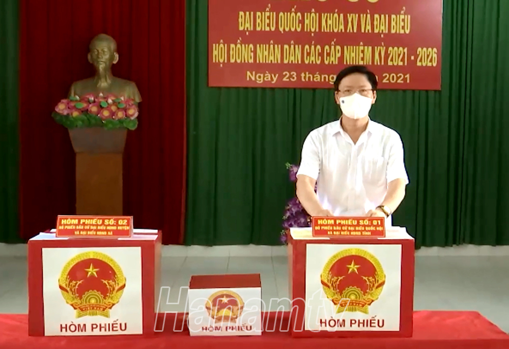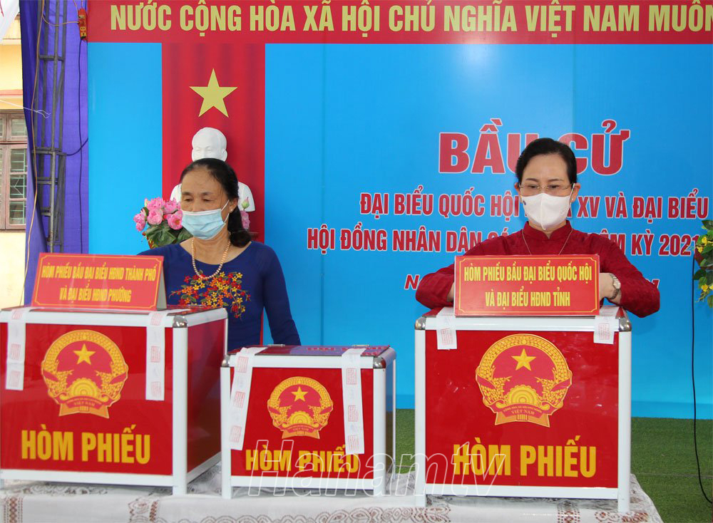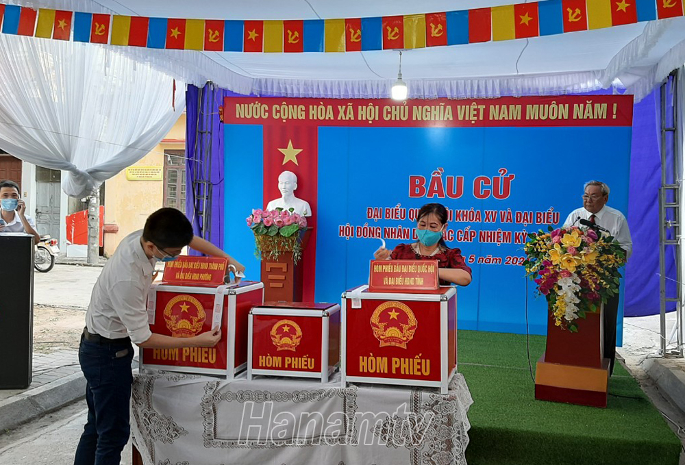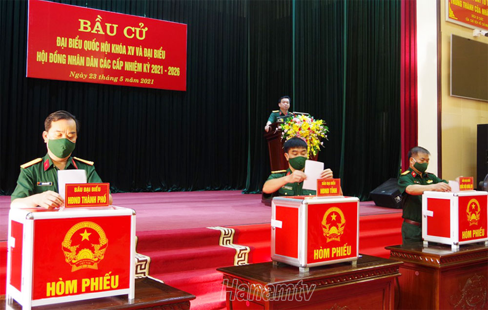 Công dân trong các khu cách ly tập trung của tỉnh bỏ phiếu bầu cử Ngoài các khu cách ly tập trung, Hà Nam còn có 11 thôn, tổ đang phong tỏa cách ly y tế để phòng chống dịch COVID-19 tại các xã Đạo Lý, Công Lý, Chân Lý, Bắc Lý của huyện Lý Nhân và Thị trấn Quế, xã Liên Sơn của huyện Kim Bảng với 2.404 hộ, 7.810 nhân khẩu. Do đó Hà Nam cũng chuẩn bị sẵn các kịch bản bầu cử khi phát hiện ca bệnh hoặc ca nghi nhiễm mới trong quá trình bầu cử. Để đảm bảo an toàn phòng chống dịch bệnh trong ngày bầu cử cũng như đảm bảo thời gian cho cử tri bỏ phiếu, các cụm dân cư đang phong tỏa cách ly tại đã tổ chức sử dụng hòm phiếu phụ đưa đến từng hộ gia đình để cử tri bỏ phiếu.