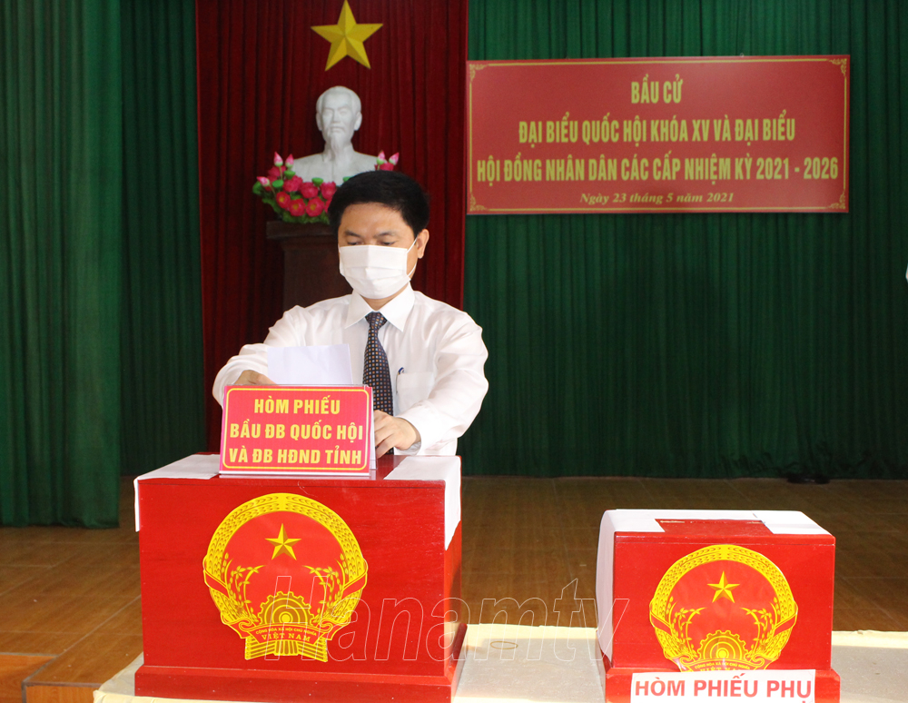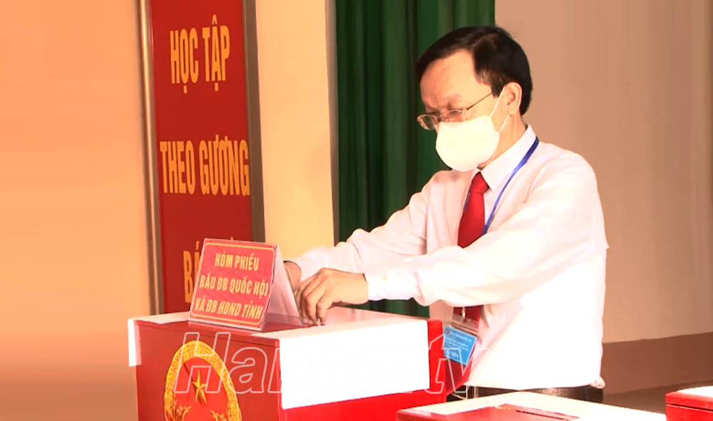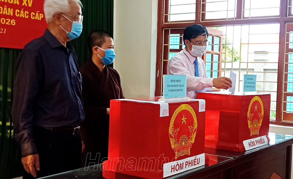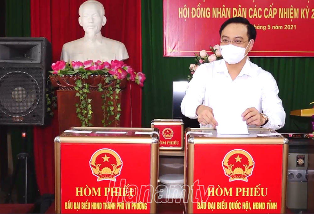 *Tại khu vực bỏ phiếu số 2, Tổ dân phố Thái Hòa, phường Hòa Mạc, thị xã Duy Tiên, đồng chí Trương Quốc Huy, Phó Bí thư Tỉnh ủy, Chủ tịch UBND tỉnh, Chủ tịch Ủy ban bầu cử tỉnh đã dự lễ khai mạc bầu cử và trực tiếp bỏ phiếu tại đây. Cùng dự có đồng chí Đặng Đình Thoảng, Ủy viên BTV Tỉnh ủy, Trưởng Ban Tổ chức Tỉnh ủy; lãnh đạo Thị ủy, UBND thị xã Duy Tiên và đông đảo cử tri Khu vực bỏ phiếu số 2, Tổ dân phố Thái Hòa, phường Hòa Mạc, thị xã Duy Tiên