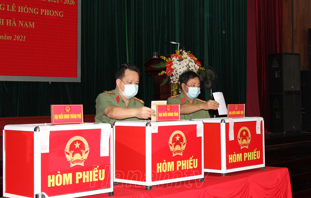 Ngay sau Lễ khai mạc, Đại tá Nguyễn Quốc Hùng - Ủy viên BTV Tỉnh ủy, Bí thư Đảng ủy, Giám đốc Công an tỉnh và các đồng chí trong Thường vụ Đảng ủy, lãnh đạo Công an tỉnh đã bỏ những lá phiếu đầu tiên để lựa chọn ra những đại biểu ưu tú, đủ đức, đủ tài đại diện cho ý trí, nguyện vọng của nhân dân vào cơ quan quyền lực nhà nước các cấp. Dự kiến Công an Hà Nam sẽ hoàn thành việc bỏ phiếu trước 9h30 phút trong buổi sáng ngày hôm nay.