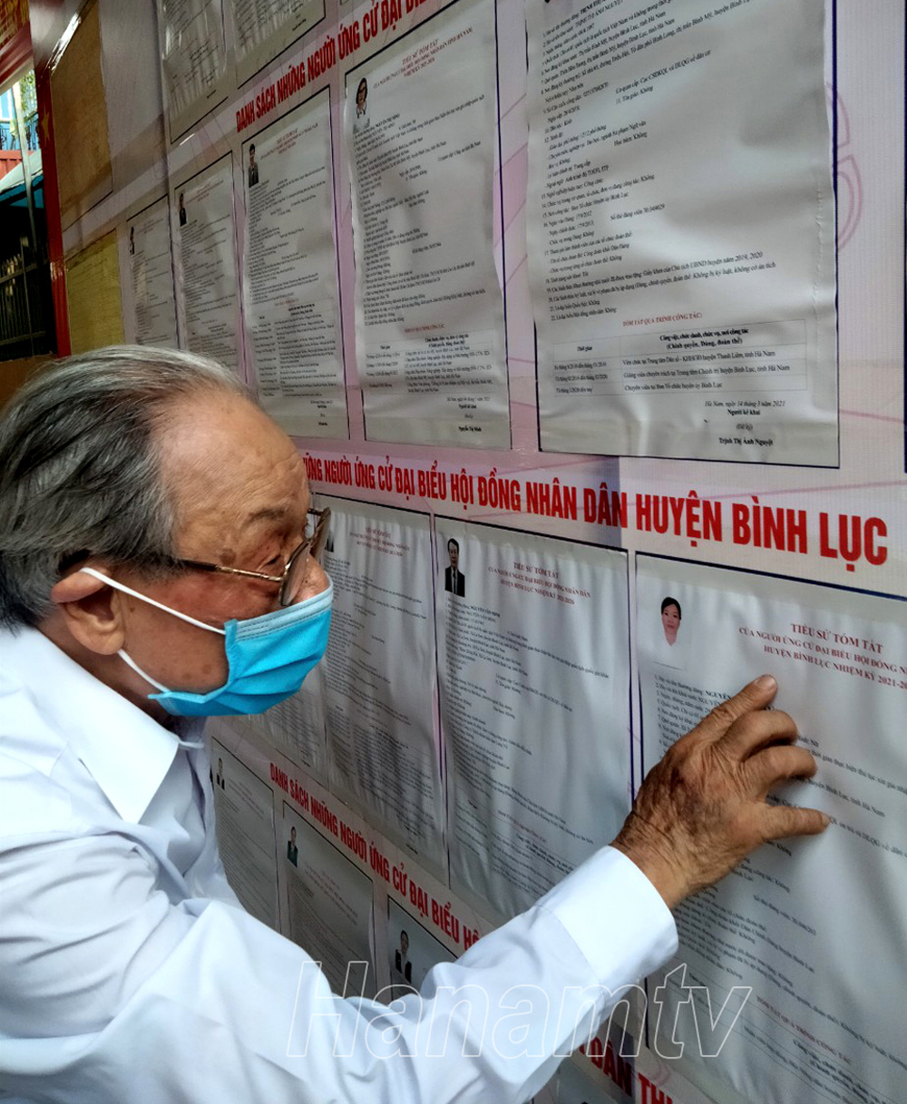 Cử tri nghiên cứu, tìm hiểu thông tin của các ứng cử viên trước khi viết phiếu bầu Theo thống kê, đến ngày bầu cử 23/5, toàn tỉnh có tổng cộng 650.769 cử tri tham gia bỏ phiếu trên địa bàn. Trong đó, có 876 cử tri sẽ thực hiện bỏ phiếu tại 6 khu cách ly tập trung trên địa bàn tỉnh do Bộ CHQS tỉnh quản lý và Khách sạn Tiến Lộc. Đó là các cử tri thuộc trường hợp F1 của bệnh nhân COVID-19 còn thời hạn cách ly tập trung đến thời điểm 23/5 và các cán bộ, chiến sỹ Bộ CHQS tỉnh, Công an tỉnh, nhân viên y tế làm nhiệm vụ trong các khu cách ly tập trung.