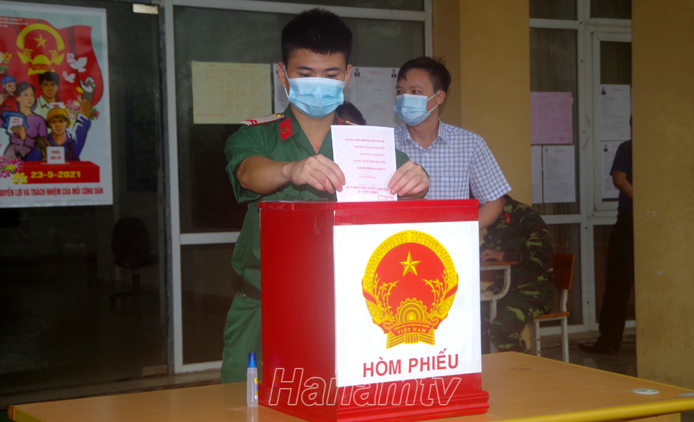 Đại tá Lường Văn Thắng - Ủy viên BTV Tỉnh ủy, Chỉ huy trưởng Bộ Chỉ huy Quân sự tỉnh cùng cán bộ, chiến sỹ LLVT tỉnh bỏ phiếu tại Khu vực bỏ phiếu Bộ Chỉ huy Quân sự tỉnh Hà Nam Theo ghi nhận, công tác bầu cử tại đây được triển khai chặt chẽ để đảm bảo an toàn phòng dịch. 100% cán bộ, chiến sĩ (CBCS) đều khai báo y tế, đo thân nhiệt, sát khuẩn tay và đảm bảo giãn cách trong khi bỏ phiếu. Các cán bộ, chiến sĩ ngay sau khi thực hiện xong việc bỏ phiếu đã tiếp tục quay trở về làm nhiệm vụ bảo đảm an ninh, an toàn cho ngày bầu cử.