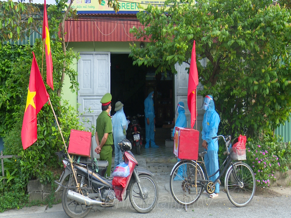 Hòm phiếu di động phục vụ người dân thực hiện quyền bầu cử tại khu cách ly phòng chống dịch Covid-19 thôn Quan Nhân, xã Đạo Lý, Lý Nhân.
