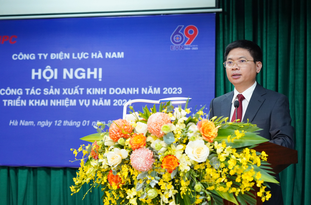 Chủ tịch Hội đồng thành viên Tổng Công ty Điện lực miền Bắc đề nghị Công ty Điện lực Hà Nam tiếp tục nỗ lực hoàn thành toàn diện các chỉ tiêu, nhiệm vụ, kế hoạch sản xuất kinh doanh năm 2024; đảm bảo cung cấp điện tin cậy, ổn định, liên tục phục vụ phát triển KT-XH, sinh hoạt của nhân dân trên địa bàn; đảm bảo tuyệt đối an toàn lưới điện, không để xảy ra tai nạn lao động, cháy nổ trong sản xuất kinh doanh; tăng cường thực hành tiết kiệm, chống lãng phí. Tập trung hoàn thành sớm các hạng mục, công trình được giao để góp phần nâng cao độ tin cậy cung cấp điện và giảm tỷ lệ tổn thất điện năng; đẩy mạnh thực hiện chuyển đổi số theo lộ trình…