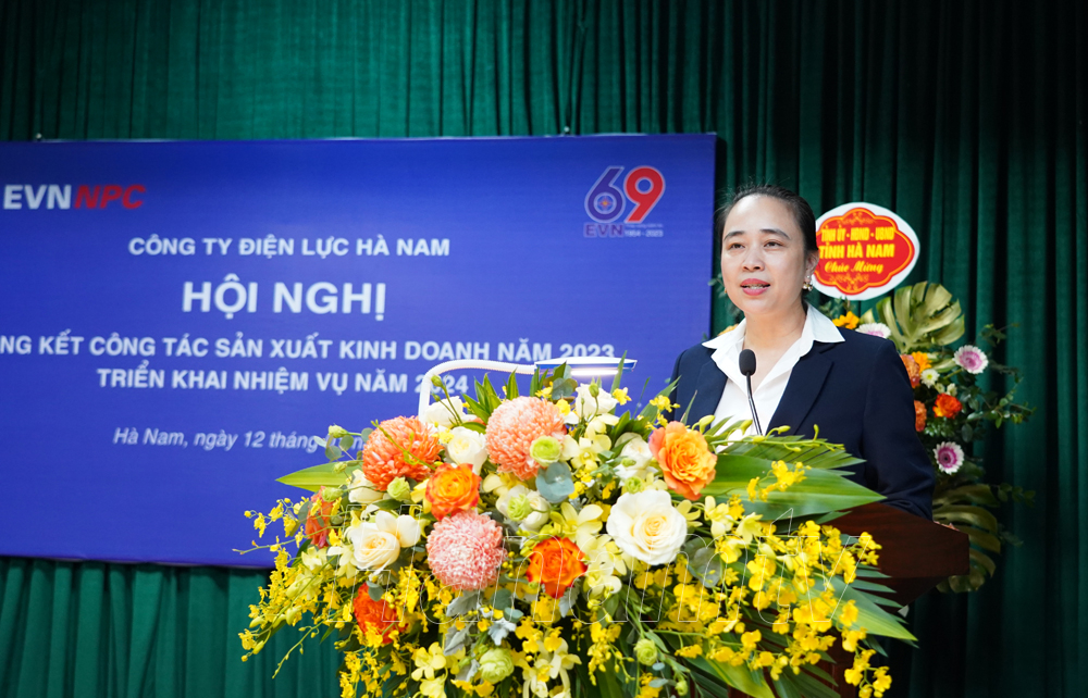Phát biểu tại hội nghị, bà Đỗ Nguyệt Ánh, Chủ tịch Hội đồng thành viên Tổng Công ty Điện lực miền Bắc ghi nhận nỗ lực vượt khó của cán bộ, công nhân viên và kết quả sản xuất, kinh doanh mà Công ty Điện lực Hà Nam đạt được trong năm 2023; góp phần quan trọng vào sự phát triển kinh tế - xã hội tỉnh và đóng góp vào thành công chung của Tổng Công ty Điện lực Miền Bắc. Đồng thời, đánh giá cao vai trò của lãnh đạo Công ty Điện lực Hà Nam trong công tác chỉ đạo, điều hành, phối hợp tốt với chính quyền địa phương các cấp để triển khai hiệu quả các nhiệm vụ được giao.