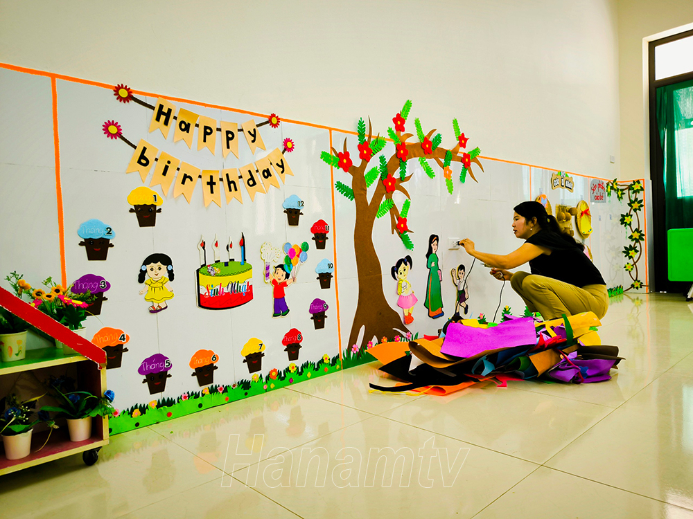 Giáo viên trường mầm non Kiện Khê trang trí lớp học chào đón năm học mới