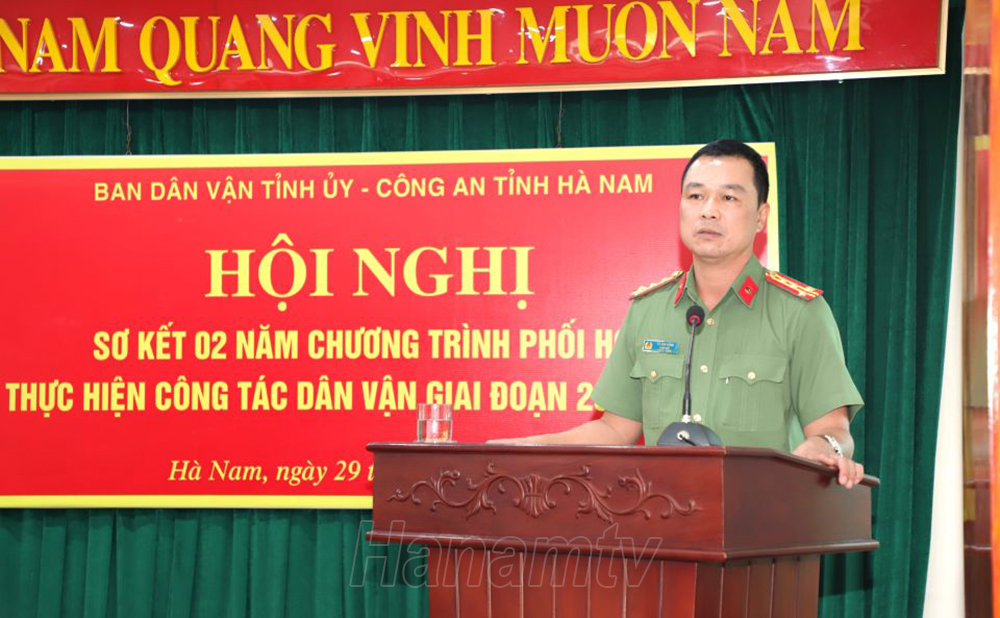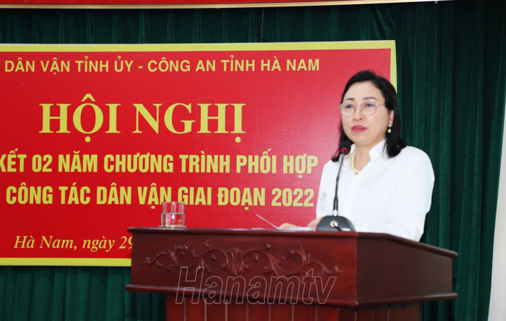 Phát biểu chỉ đạo tại Hội nghị, đồng chí Phó Bí thư thường trực Tỉnhủy ghi nhận, biểu dương những kết quả Chương trình phối hợp thực hiện công tác dân vận đã đạt được trong 02 năm qua. Đề nghị 2 cơ quan tiếp tục quán triệt, tuyên truyền các chủ trương, đường lối của Đảng, chính sách, pháp luật của Nhà nước, của Ban Dân vận Trung ương, Bộ Công an và các văn bản chỉ đạo của Tỉnh về công tác dân vận. Phối hợp tham mưu Tỉnh ủy những chủ trương, giải pháp về công tác dân vận, nhằm phát huy sức mạnh tổng hợp của các cấp, các ngành, của cả hệ thống chính trị và các tầng lớp Nhân dân trong giữ gìn an ninh chính trị, trật tự an toàn xã hội; xây dựng thế trận an ninh Nhân dân vững chắc trên địa bàn tỉnh. Tăng cường đổi mới, nâng cao hiệu quả công tác dân vận trong lực lượng Công an nhân dân, gắn việc thực hiện công tác dân vận với triển khai nhiệm vụ chính trị của ngành. Nâng cao chất lượng, hiệu quả việc thực hiện phong trào thi đua “Dân vận khéo” trên địa bàn tỉnh; đẩy mạnh thực hiện phong trào thi đua “Dân vận khéo” trong lực lượng Công an nhân dân gắn với thực hiện phong trào “Vì an ninh Tổ quốc” và các cuộc vận động, các phong trào thi đua yêu nước bảo đảm cụ thể, thiết thực, tập trung vào những việc mới, việc khó.