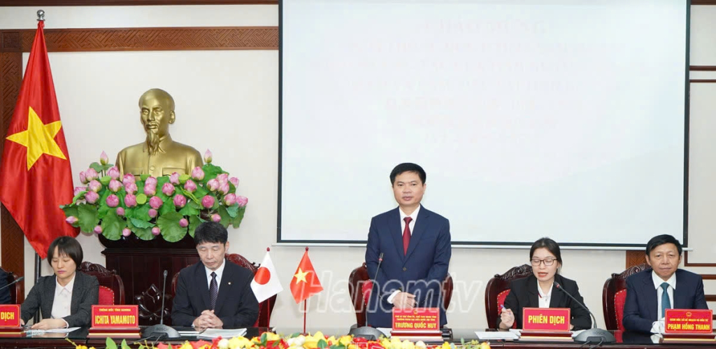 Phát biểu tại buổi làm việc, đồng chí Chủ tịch UBND tỉnh Trương Quốc Huy bày tỏ vui mừng được đón Thống đốc và Đoàn công tác tỉnh Gunma đến thăm và làm việc tại tỉnh Hà Nam. Đồng chí Chủ tịch UBND tỉnh nhấn mạnh: Nhật Bản hiện là quốc gia có số lượng nhà đầu tư đứng thứ 2 tại tỉnh Hà Nam với 107 dự án ( chiếm gần 30% số dự án FDI tại Hà Nam) với tổng số vốn đăng ký hơn 1,3 tỷ USD. Đặc biệt, các doanh nghiệp Nhật Bản luôn đứng tốp đầu trong danh sách các doanh nghiệp FDI có đóng góp lớn cho ngân sách của tỉnh. Hoạt động của các doanh nghiệp FDI đầu tư tại Hà Nam, nhất là các doanh nghiệp Nhật Bản đã góp phần tích cực trong việc chuyển dịch cơ cấu kinh tế, nâng cao giá trị sản xuất công nghiệp đặc biệt là các lĩnh vực công nghiệp hỗ trợ, chế biến, chế tạo theo định hướng phát triển của tỉnh; giải quyết việc làm cho người lao động, đóng góp cho ngân sách, tham gia tích cực vào các hoạt động an sinh xã hội của tỉnh.