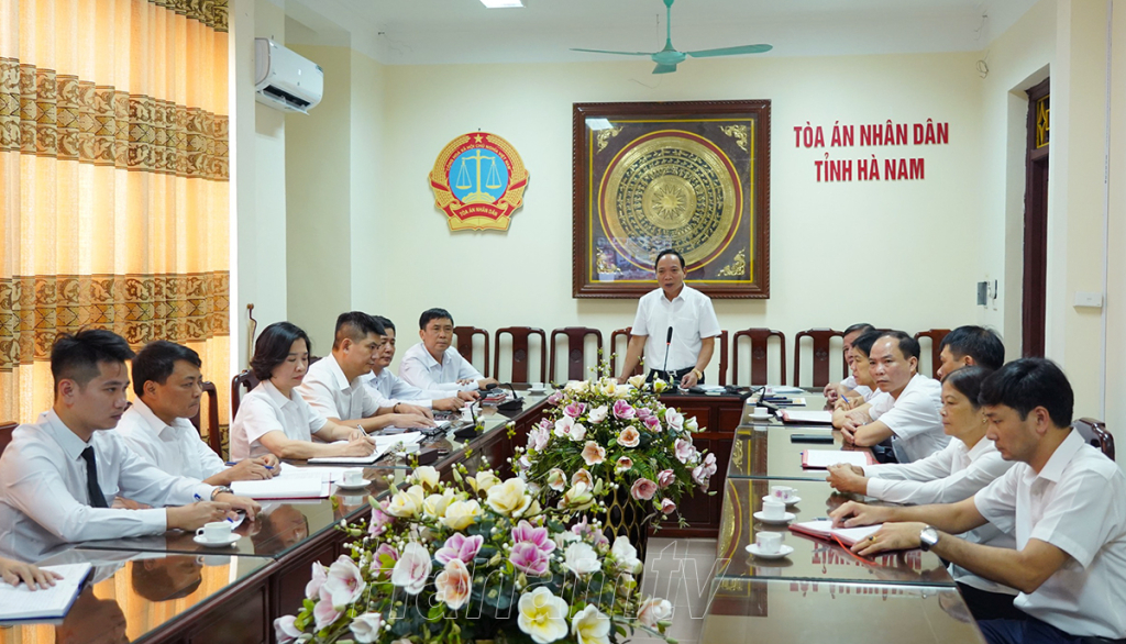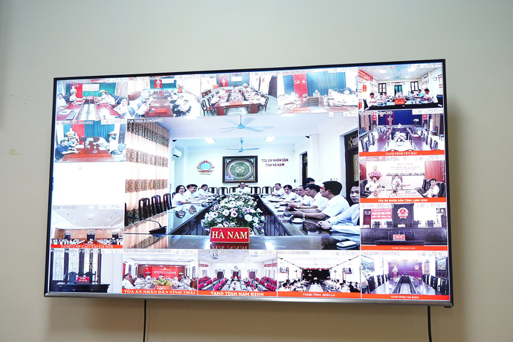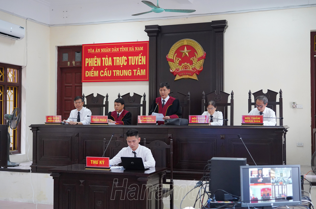 Bằng hình thức trực tuyến, các đại biểu tham dự đã theo dõi toàn bộ quá trình TAND tỉnh Hà Nam xét xử vụ án hình sự sơ thẩm. Đây là phiên tòa có sự kết hợp giữa hai giải pháp mang tính đột phá mà hệ thống TAND đang thực hiện trong thời gian qua là kết hợp "phiên tòa rút kinh nghiệm" với "phiên tòa trực tuyến".