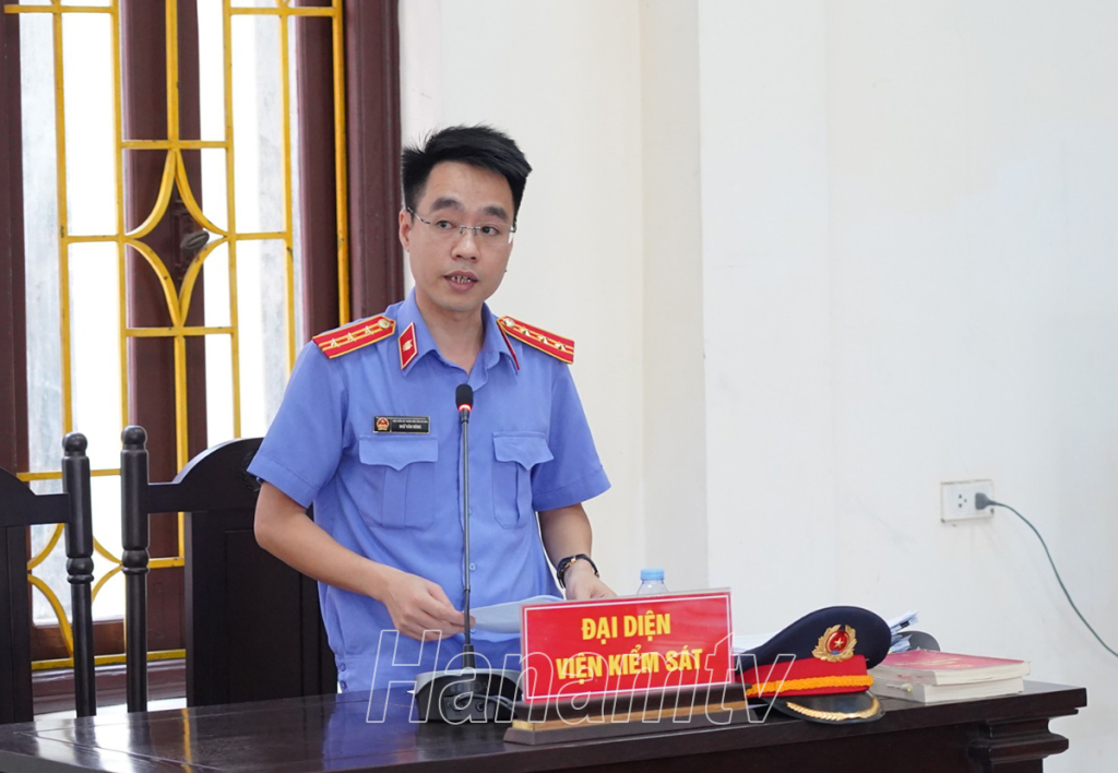 Thành phần tham dự phiên tòa tại điểm cầu Tòa án Nhân dân tỉnh Hà NamĐại diện Viện kiểm sát nhân dân tỉnh trình bày cáo trạng tại phiên tòa