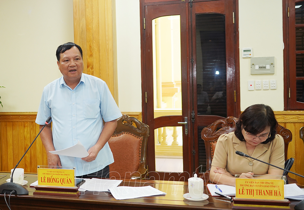 Đồng chí Lê Hồng Quân, Ủy viên BTV Tỉnh ủy, Chủ nhiệm Ủy ban Kiểm tra Tỉnh ủy phát biểu tại hội nghị.