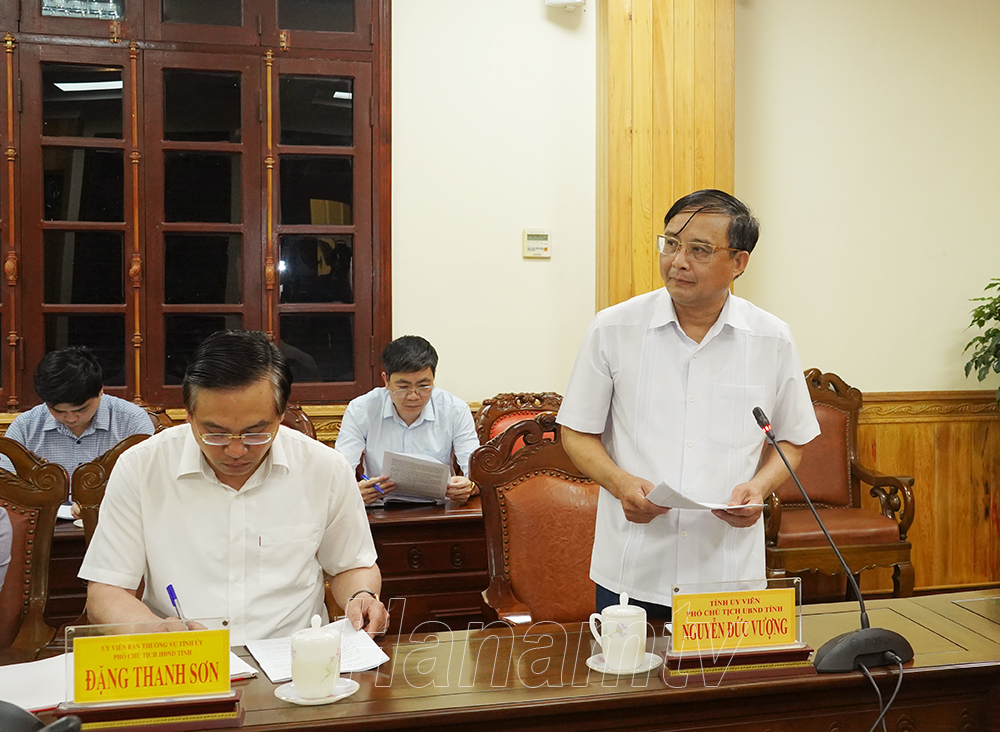 Đồng chí Nguyễn Đức Vượng, Tỉnh ủy viên, Phó Chủ tịch UBND tỉnh báo cáo tại hội nghị.